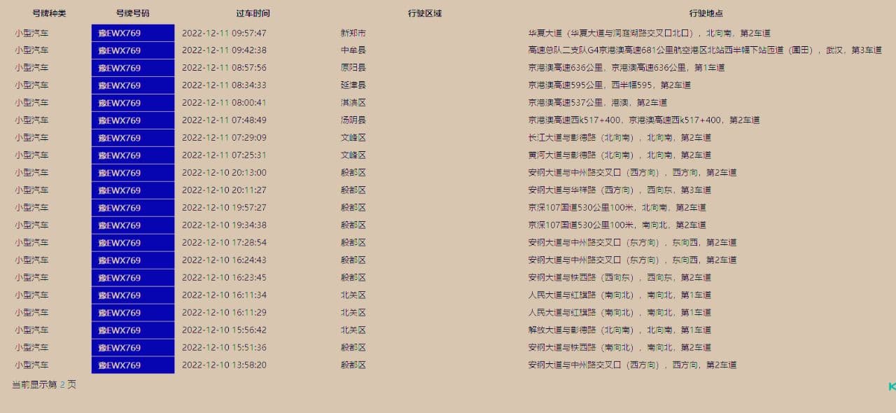 要查询车辆轨迹,需要提供的信息是车牌号。目前的车辆轨迹默认出市区版本。